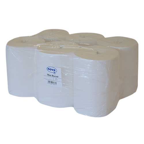 Efficient mini barrel center-feed paper towels designed for space-conscious environments requiring convenient dispensing. This six-pack configuration delivers 200-sheet rolls with 150mm width, optimizing material usage while maintaining accessibility. The center-feed mechanism enables single-handed operation, reducing waste and improving workflow efficiency in busy kitchens, restrooms, and commercial facilities. The compact barrel design fits standard dispensers while providing adequate capacity for moderate-use applications. Ideal for offices, small businesses, and establishments prioritizing both functionality and economical paper consumption.